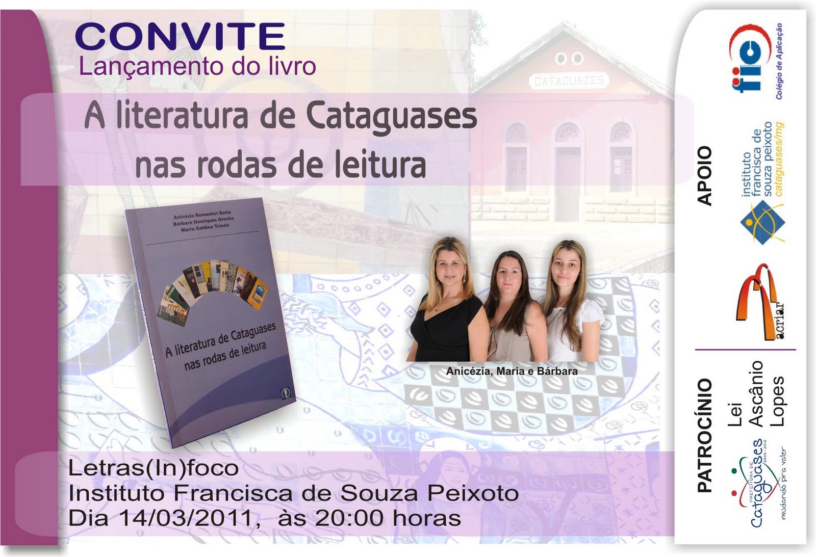20: 30 h Lançamento do livro: A literatura de Cataguases nas rodas de leitura. (Anicézia Romanhol Bette; Bárbara Grenha e Maria Galdina )